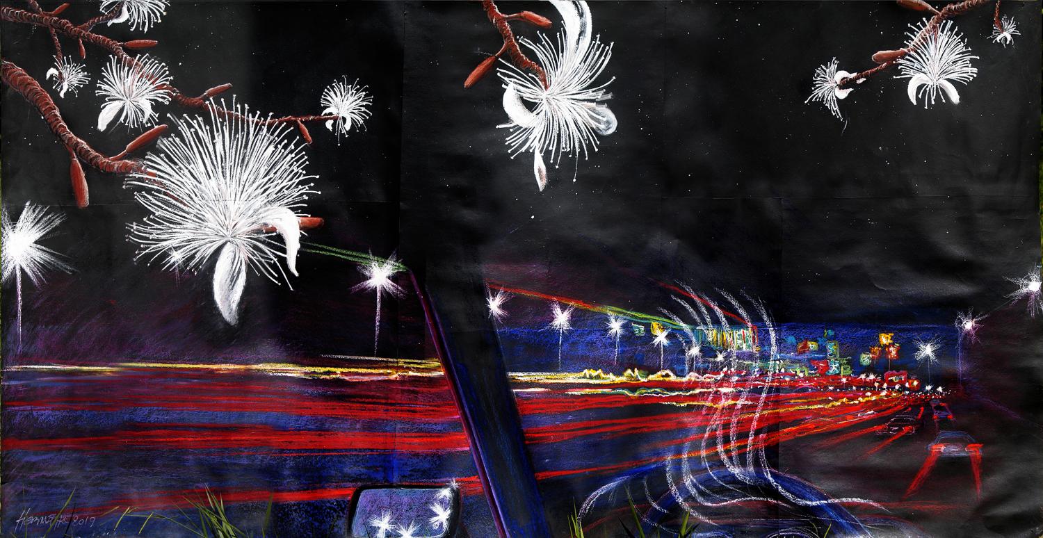 2019 BOMBAX N SPECTRALS   oil pastel on paper 170x300 cm