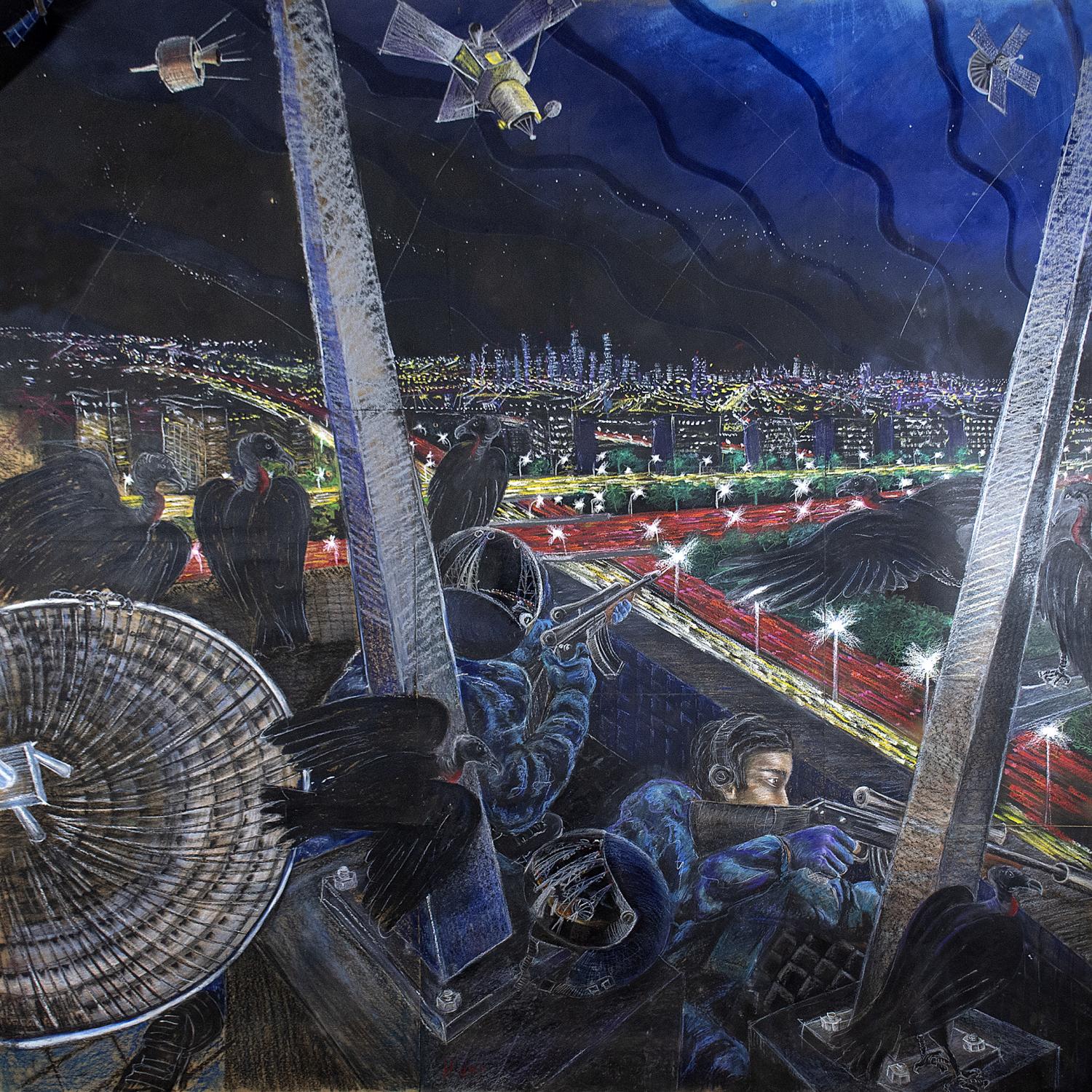 Ruídos Contemporâneos apresenta 30 desenhos de grande formato do artista W. Hermusche que desde os anos 1980, integra uma geração que empreendeu pesquisas no sentido de criar uma identidade poética, cultural e artística para Brasília.    Esta mostra pretende elucidar o processo criativo e  conceitual conduzido pelo artista através da massiva prática do desenho expressionista.  Nas obras realizadas nos anos 1980, (quando em uma fase lírica ) ele redesenha a URBIS com o gesto visceral do grafite, das granulações do vídeo, das rasuras do traço e da inconclusão de um esboço, criando um imaginário que coloca o espectador em um estado que humaniza o cartão-postal,  criando uma outra Brasília: cinética, eletromagnética e humanista, refundada a partir do projeto original de Lucio Costa e Oscar Niemeyer. Nas obras realizadas a partir dos anos 2000 ocupa-se com as mais atuais questões  da sociedade globalizada, numa paisagem urbana cosmopolita, planetária, como cenário para grandes questões mundiais contemporâneas encenadas em alta voltagem dramática. Hermusche injeta eletricidade e dramaticidade na paisagem urbana silenciosa sob o sobrevôo de drones e satélites em um ritmo sensorial e visceral das narrativas dos modernos cartoons.