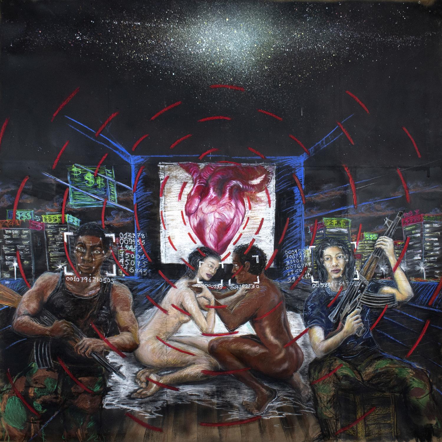 2021 HEARTBEAT Oil pastel on Kraftpaper 300x300cm